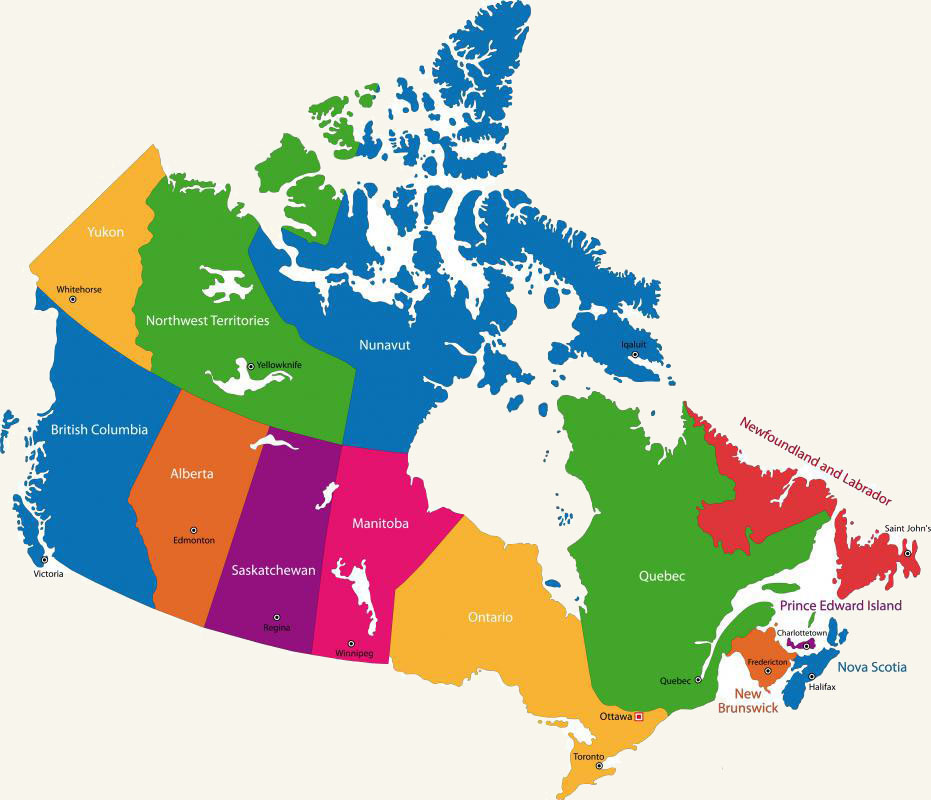 کانادا: (Canada) کشوری در شمال قاره آمریکای شمالی است که از ده استان (فدرال) و یازده مرکز اداری و سه قلمرو تشکیل شدهاست. این کشور از اقیانوس اطلس تا اقیانوس آرام و از شمال تا اقیانوس منجمد شمالی گسترده است. کانادا با مساحت ۹٫۹۸ میلیون کیلومتر مربع، دومین کشور پهناور جهان از نظر مجموع مساحت و چهارمین کشور پهناور جهان از نظر مساحت خشکی است . بخش زیادی از خاک کانادا به دلیل سرمای هوا و نزدیکی به قطب شمال ، خالی از سکنه است. پایتخت سیاسی کانادا شهر اتاوا است، محلی که در آن مجلس فدرال کشور قرار دارد.